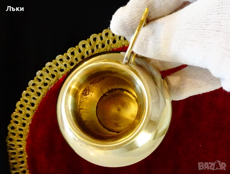 златен блясък.Височина 8 см.,диаметър 8 см.,тегло 130 гр.Вместимост 180 мл.