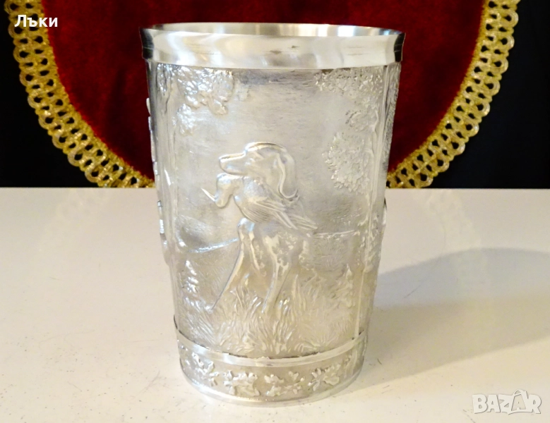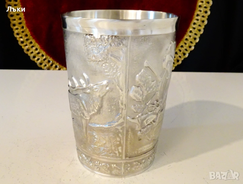 герб на ловците.Основата на чашата е декорирана с релефни дъбови клонки.Високо