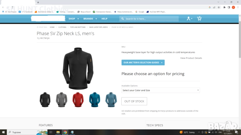 ARC'TERYX Phase SV Zip Neck LS men's Размер XL термо блуза 15-54 → Обява 52216916