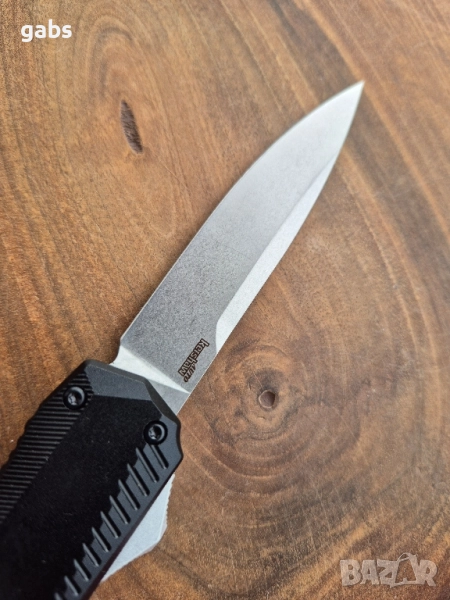 Острието е изработено от CPM-20CV американскa прахoва стомана с добра устойчивост на корозия и износване и много дълго запазване на остротата.
