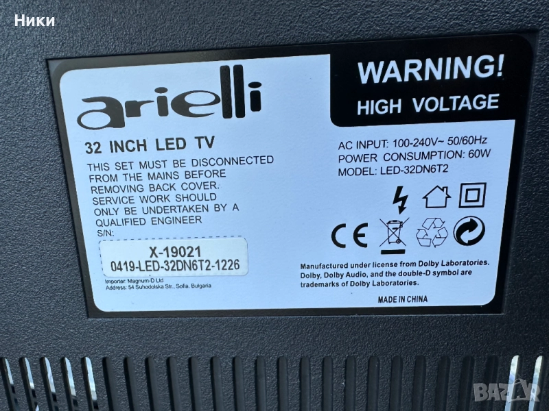 Main Board TP.MS3663S.PB818 от телевизор Arielli LED-32DN6T2 Платката е работеща и свалена от работещ телевизор със счупен дисплей. Модела на дисплея е LSC320AN10.Изпращам по ЕКОНТ с опция тест и преглед!!! С оглед и проба на това, че модулите нямат гаранция, след прегледа, теста и заплащането не приемам възражения и ракламации, щото предварително всички платки и модули са тествани и в изправно състояние се пращат!!!