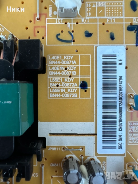 Power Board BN44-00872A / BN44-00871A от телевизор Samsung UE49K5602AK. Платката е работеща и свалена от работещ телевизор със счупен дисплей. Модела на дисплея е CY-KK049BGHV2H. Изпращам