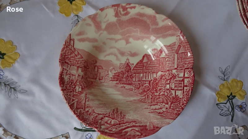 Червена от серията "Стара английска провинция" - Пазарен площад, с диаметър – 22см . височина – 4см В много добро състояние. Цена - 14лв./ 7,16€.
