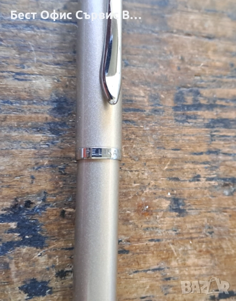 Продавам писалка Пеликан Pelikan бежова и сребрист метал в кутия. Оригинална, метална и чисто нова. Произведена в Германия. Имам 2 броя. На перото има логото на Пеликан. Супер подарък за ценители. Вътре в писалката има 1 брой патронче със синьо мастило .