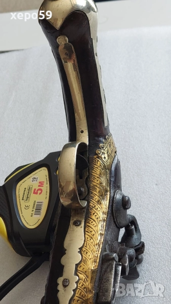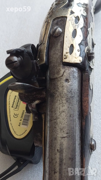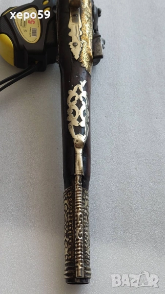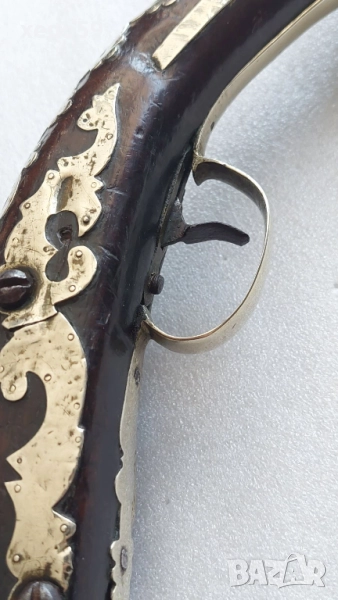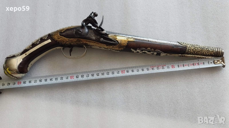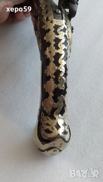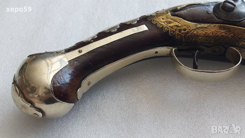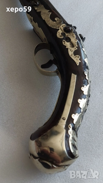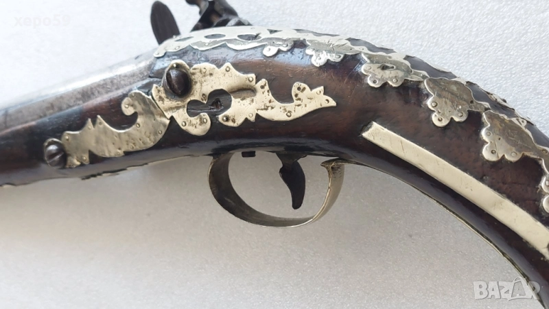 Стар кремъчен пищов със сребърни апликации,работещ ,револвер, ятаган,сабя,щик → Обява 52217517