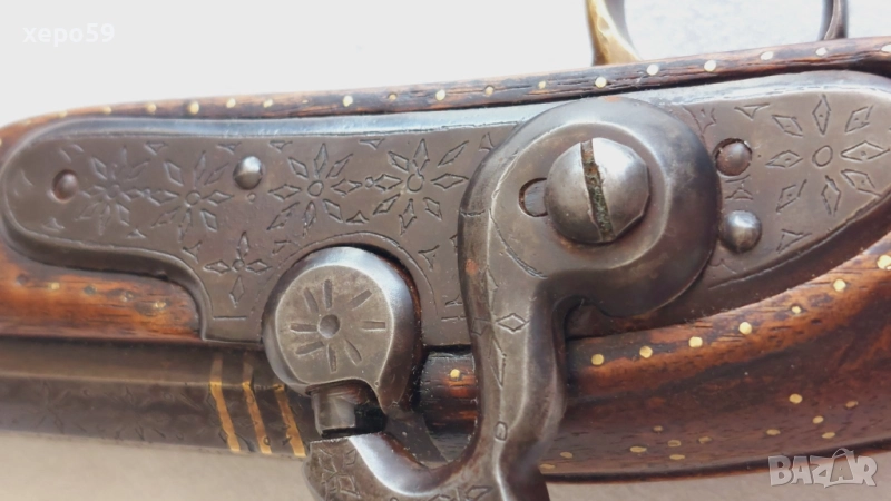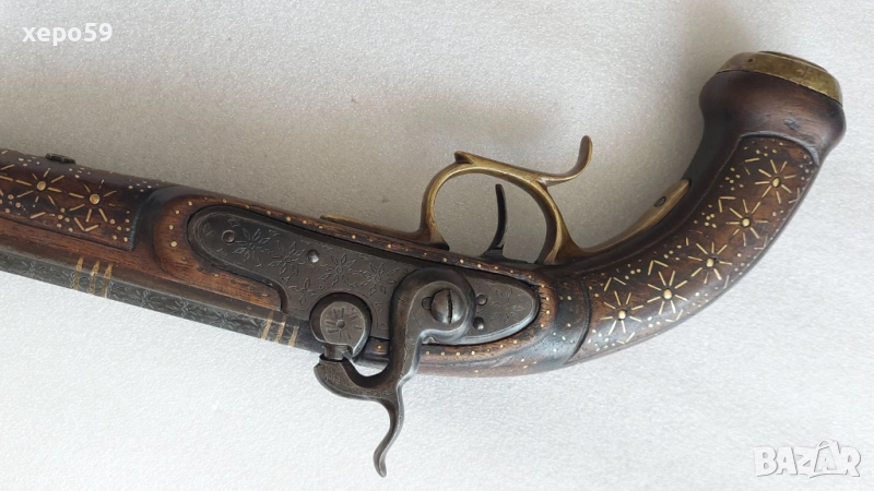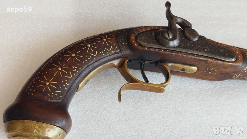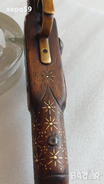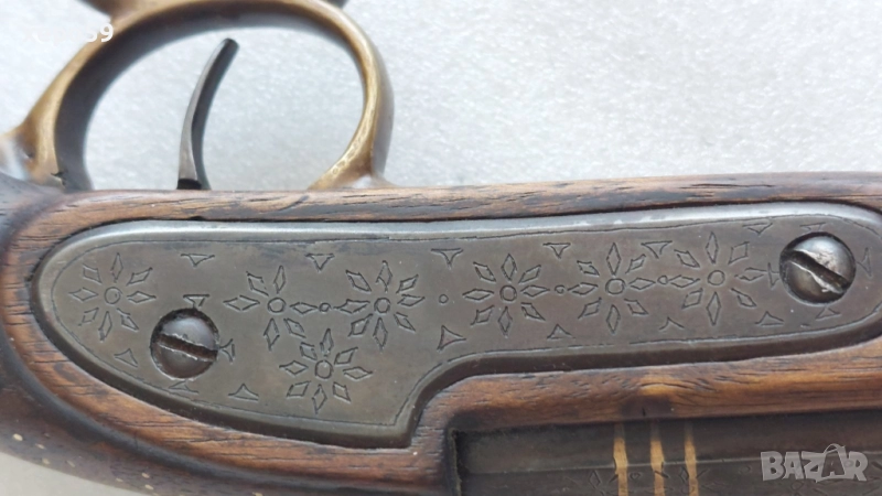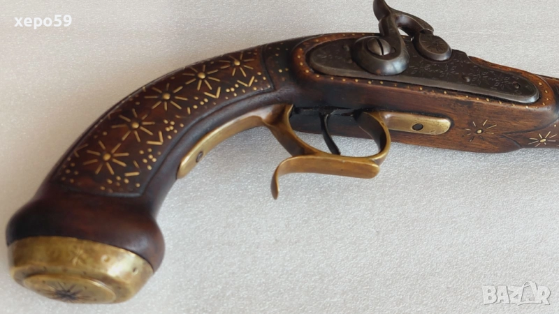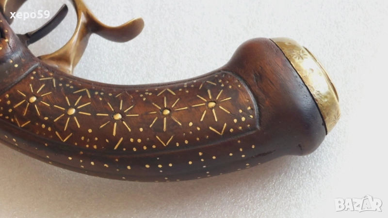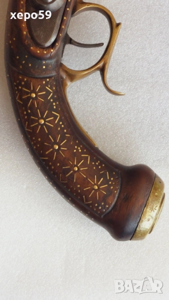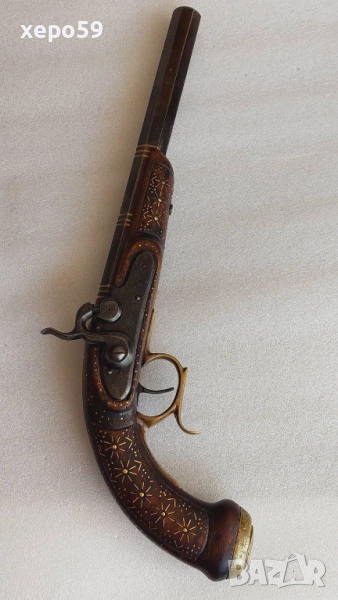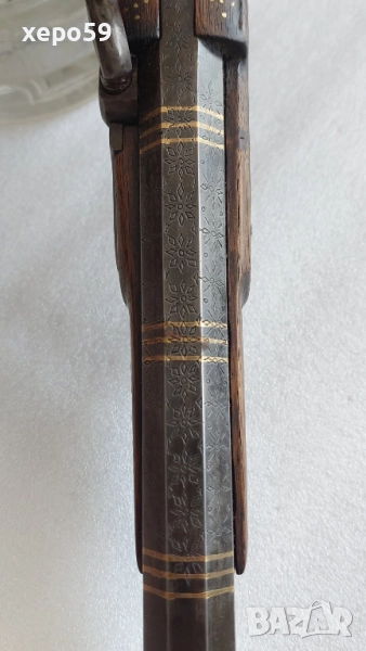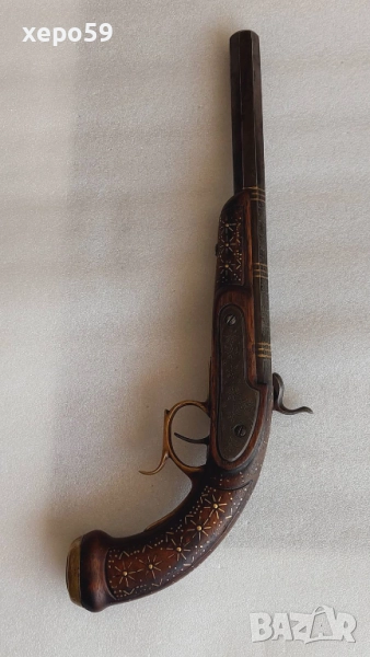 Капсулен пищов в отлично състояние-гравирана цев и златни набивки ,револвер, ятаган,сабя,щик → Обява 52217537
