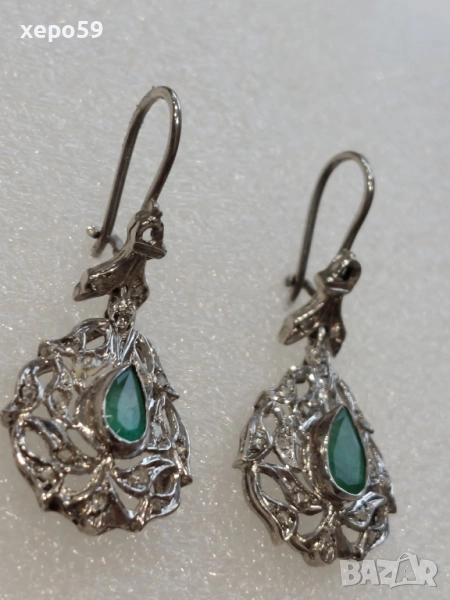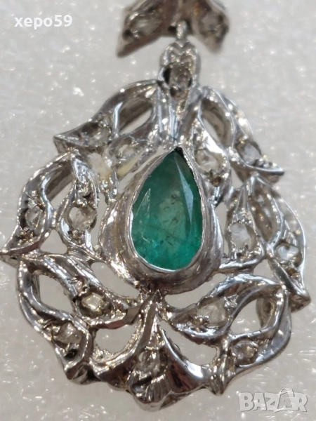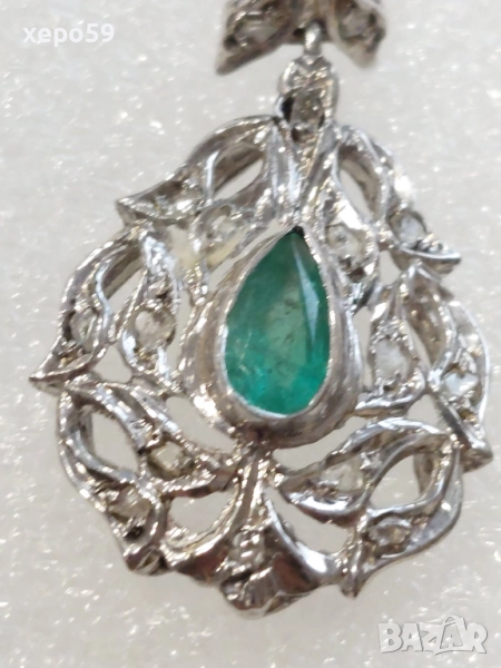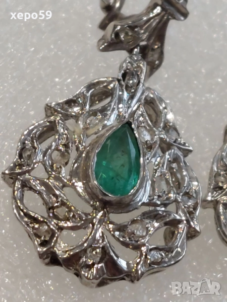 Стари дамски златни обеци с изумруд и диаманти., 1 650 лв → Обява 52217598