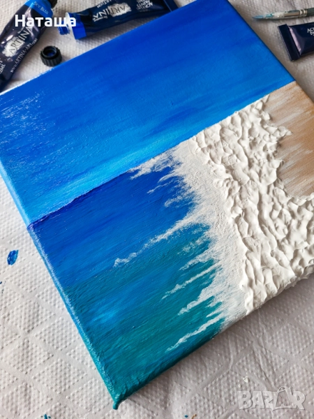 Картина, рисувана с акрилни бои и с 3D ефект на вълните, с размери 20х20