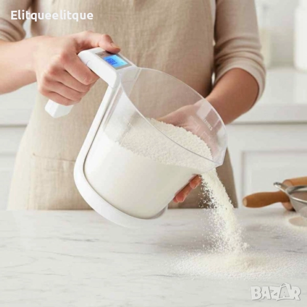 Материал на купата: хранителен пластмаса Размери: 21.5 × 14.3 × 15 см Тегло на уреда: около 500 г Точност на измерване: до 1 г Мерителна скала на купата: 1000 мл Максимално тегло: до 5 кг (препоръчително до 3 кг) Захранване: батерия CR2032 (не е включена)