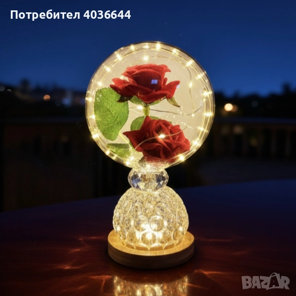 Лампа с вечни рози и топла LED светлина – подарък, който не увяхва → Обява 52217657