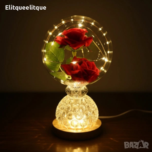 Лампа с вечни рози и топла LED светлина – подарък, който не увяхва