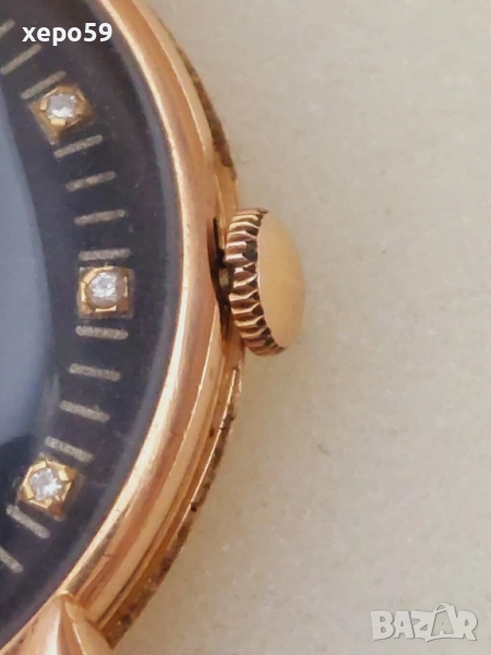 18к часовник с чер циферблат и инкрустирани диаманти на фирмата UNIVERSAL GENEVA.Калибърен номер на машината 264.Произведен в периода 1940-45 година.Визуално и функционално състояние много добро за времето си.