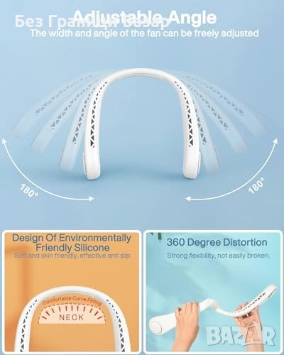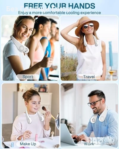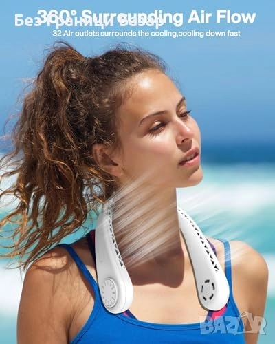 Нов Преносим вентилатор за врат 4000mAh – 3 скорости, USB Type-C