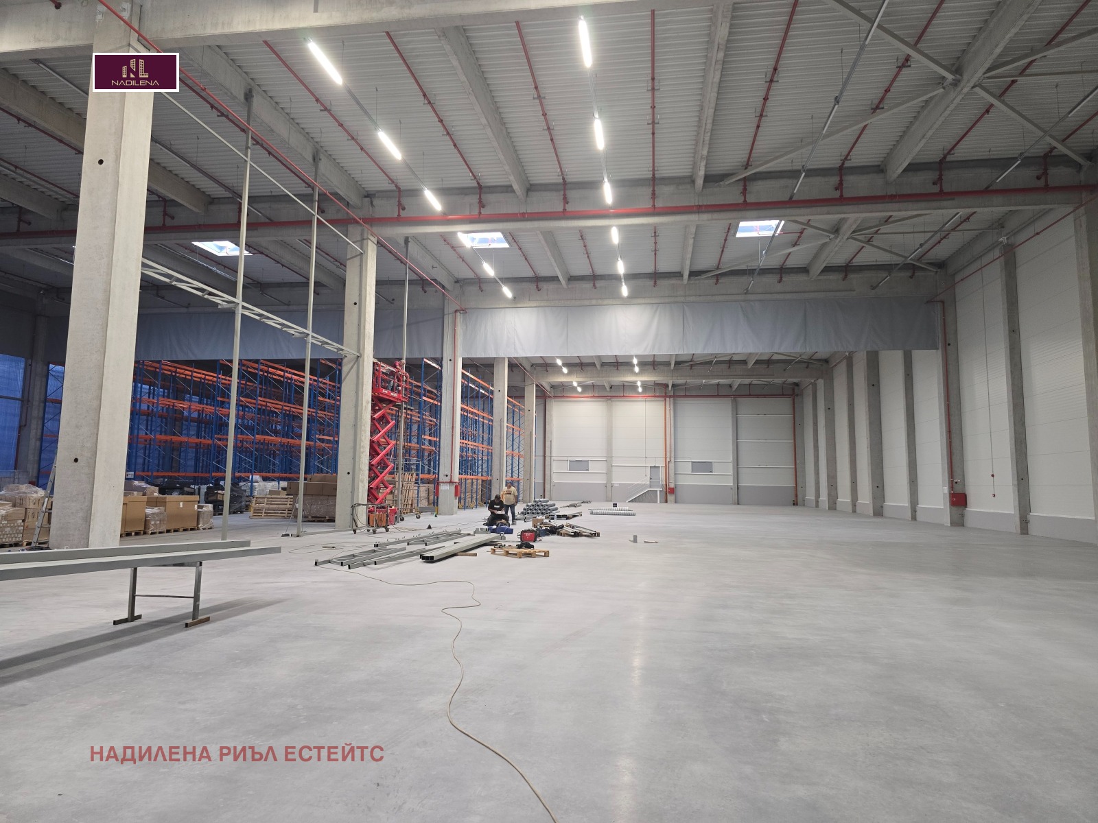 МОДЕРЕН ЛОГИСТИЧЕН ЦЕНТЪР! Надилена риъл естейтс предлага складови, офисни и битови помещения в съвременна складова база, намираща се на територията на община Елин Пелин, с бърз достъп от АМ 'Тракия' и гр.София(на около 15 минути с автомобил). Целият логистичен парк е със застроена площ от около 12 800 кв.м., като на територията на парка функционират 6 сгради, кантина, огромен паркинг за товарни автомобили, зони за складиране на открито. Паркът разполага с четири собствени трафопоста и аварийно захранване, собствен водоизточник с достатъчно голям дебит. Прокаран е оптичен кабел за възможна най-бърза връзка с интернет. Достъпът до основните пътни връзки е асфалтиран път.