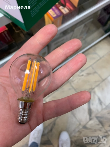 Тази E14 LED лампа с нажежаема жичка във формата на капка не е димируема.