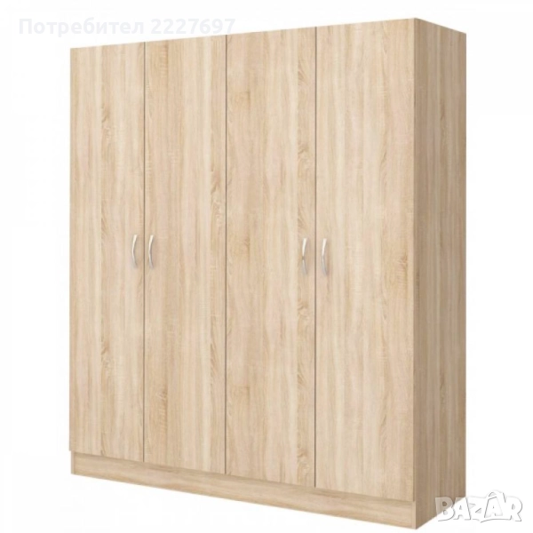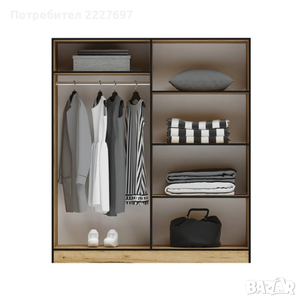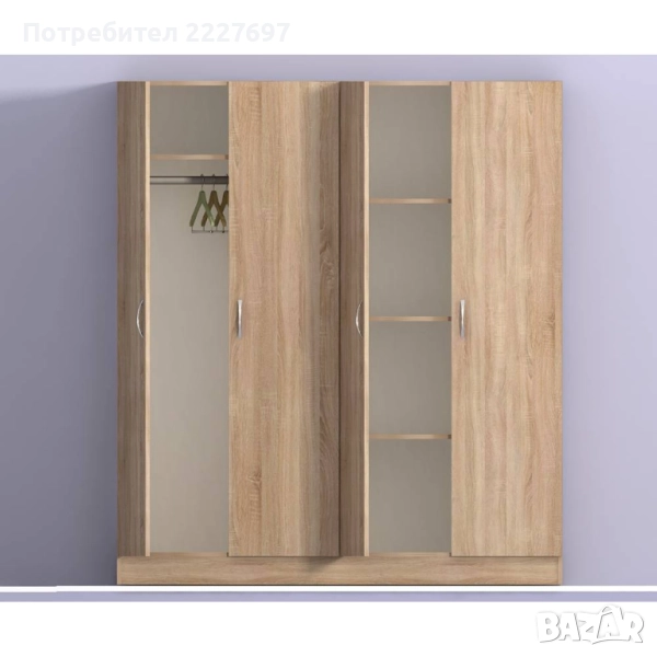 Гардероб Аполо 6 е четирикрил с достатъчно място за дрехи и вещи - едната част е с рафтове, а другата е с лост за закачалки. Вратите са с плавно затваряне.