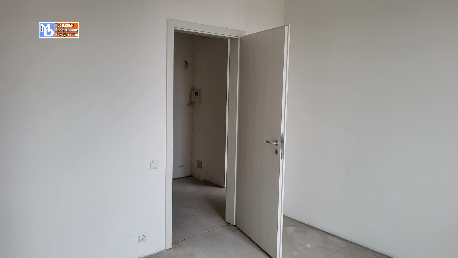 Състои се от дневна със светла кухня- общо 38 кв.м., спалня- 14 кв.м., антре, баня с WC- 3.50 кв.м. и лоджия- 5 кв.м. В апартамента е изградена и монтирана термопомпена инсталация за отопление и охлаждане с монтирани конвектори и подово отопление в баня и кухня. Монтирани са висок клас интериорни врати. Дограма- алуминиева с прекъснат термомост и трислоен стъклопакет. Стените са шпакловани и подготвени за боя.