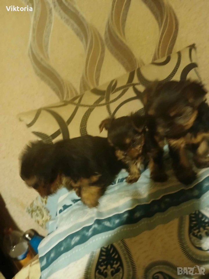 Йоркширски териер. 3малки момченця и едно мъжко(кафявото е момиче) с 2 ваксини и паспорт, обезпаразитени очакват свойте нови семейства. Кученцата са на 1месец.