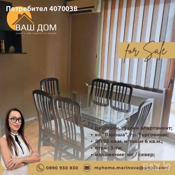 двустаен апартамент → Обява 52221808