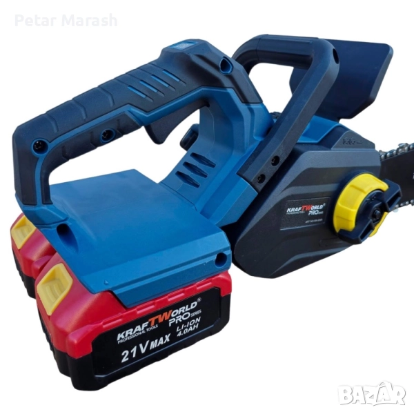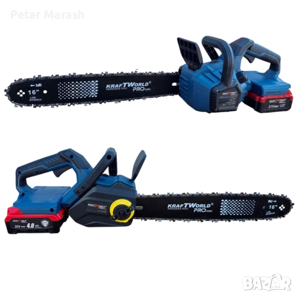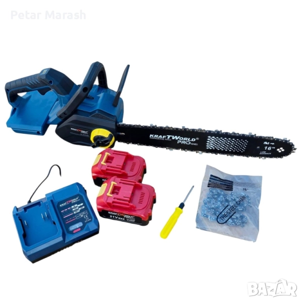 Акумулаторна Верижна Резачка с двойна батерия KraftWorld PRO – 42V (2×21V), 16″, 2 Вериги
