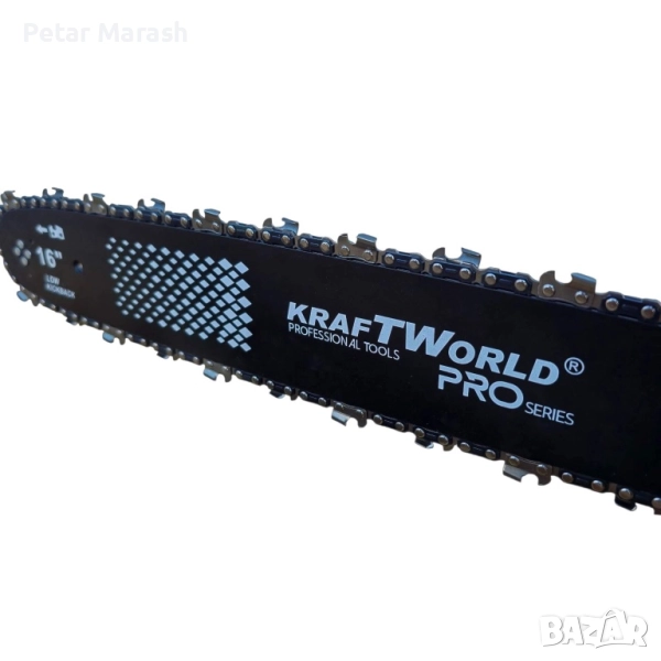 🌲 KraftWorld PRO Акумулаторна Верижна Резачка – 42V (2×21V), 16″, Brushless мотор