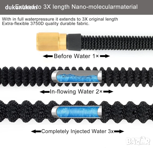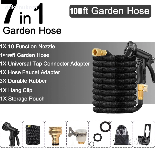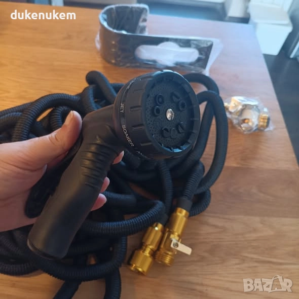 Разтегателен градински маркуч 30 м с накрайници и пистолет с 10 режима
