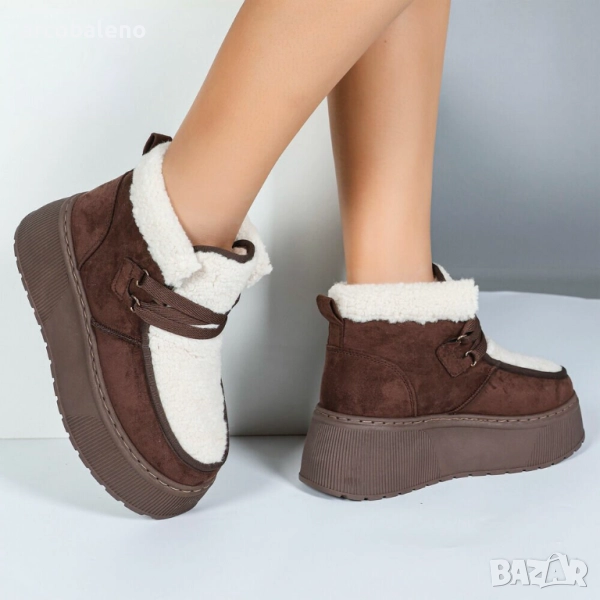 Потопете се в перфектен комфорт и модерна изтънченост с тези зашеметяващи ботуши, които стилно ще подобрят ежедневието ви. Обувката съчетава висококачествени материали с обмислен дизайн, което я прави идеална за по-хладните месеци. Меката текстура и кадифената повърхност осигуряват комфортно усещане, а характерната платформа на подметката осигурява необходимата височина, без да се прави компромис с комфорта. Идеални за спонтанни излизания или спокойни дни, тези ботуши са еднакво подходящи както за ежедневието, така и за свободното време. Практичната система за връзване позволява удобно прилягане, а здравата конструкция гарантира издръжливост. Тези ботуши са предназначени за жени, които търсят стил и едновременно шик и функционалност. Перфектно съчетани с ежедневни тоалети или за градски вид, тези обувки са идеалният аксесоар за модните ентусиасти през всеки сезон.