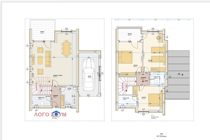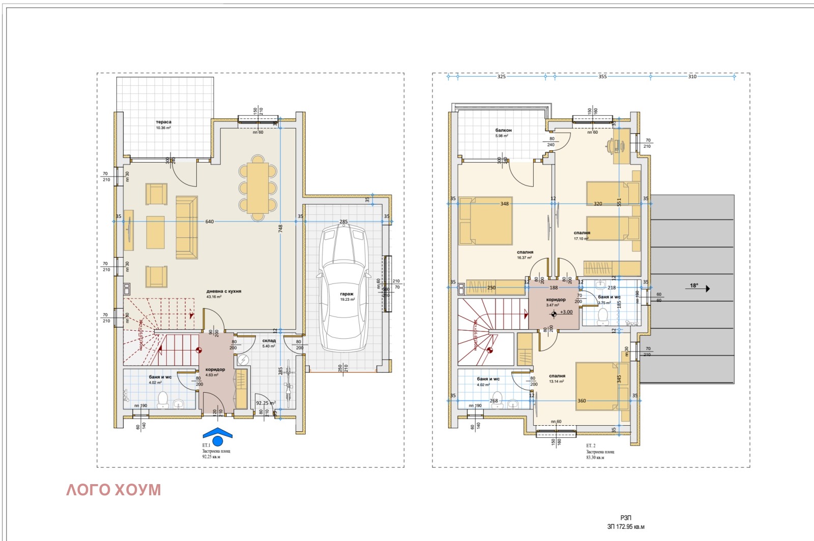 Къща 9 с площ от 172,95 м2 и двор - 280 м2 с ГАРАЖ, на 2 етажа: