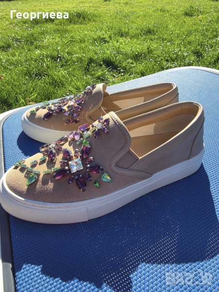 Кожени обувки с камъни в клсическо бежов цвят. 36 номер.