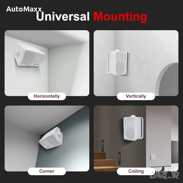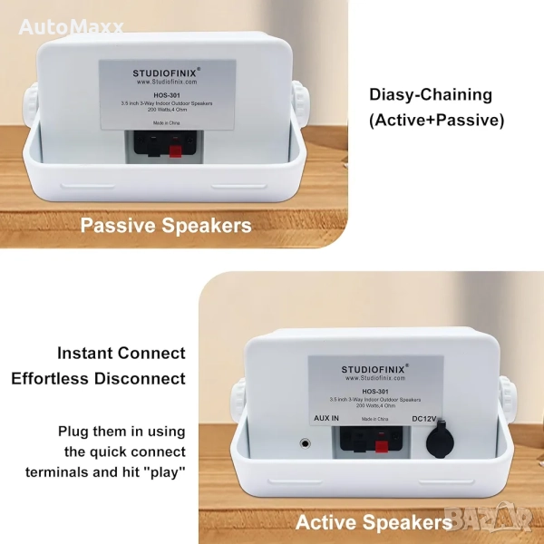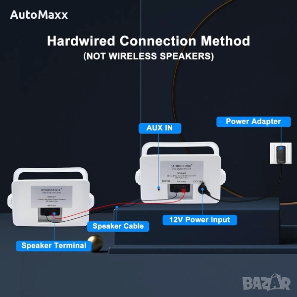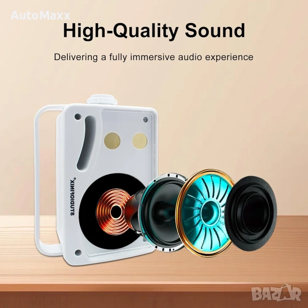 STUDIOFINIX 3.5-инчови външни Bluetooth високоговорители, водоустойчиви, с кабел, 3-лентови, 200W, премиум високоговорители за стенен монтаж, идеални за употреба на тераса, веранда, закрито и открито (бели)