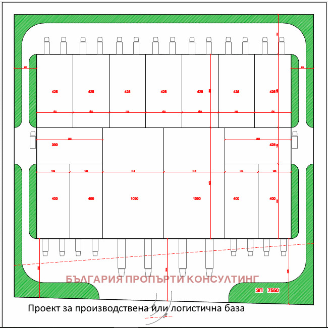 Отличен имот разположен непосредствена близост до София.Готов проект за складова база и производство с големи мощноти на еднофазен и трифазен ток.