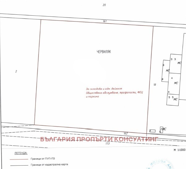 Гранично до имотът има изградена складова база, която е наета от Била.