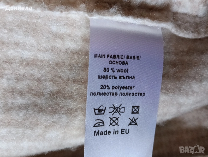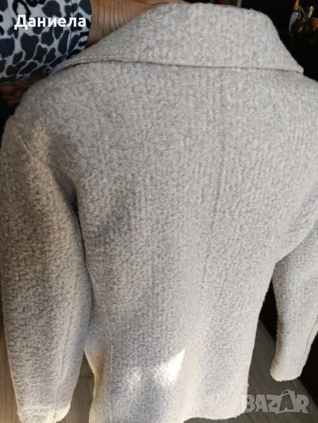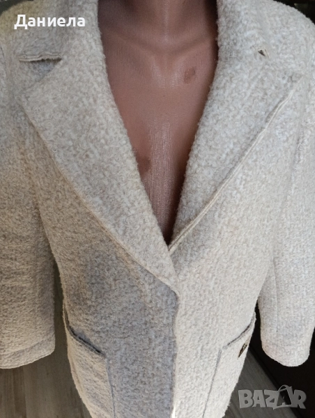 Дамско сако на Юнона, размер 44, бежави със съдържание на вълна. Може да се носи и като връхна дреха. Слагано броени пъти, неразличими от ново. Размери: рамене 47 см., бюст 54 см, талия 50 см, дължина 69 см.