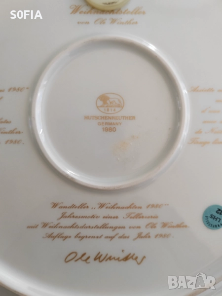 Порцеланова чиния от дизайнера Ole Winther за фабриката Hutschenreuther (модел „Weihnachtsteller 1980“)