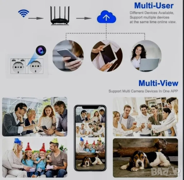 Скрита шпионска Wifi камера в двоен контакт с 2 USB порта