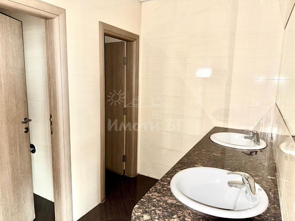 Oтличен офис в хубава бизнес сграда с видеонаблюдение, охрана, подземен паркинг и надземен паркинг. Разпределение: приемна/рецепция, голямо open space помещение, 3 отделни кабинета, кухненски бокс, два двойни санитарни възела, тераса с чудесна гледка. В перфектно състояние, готов за ползване веднага. Офисът е светъл и просторен. Отопление/охлаждане с централна климатизация. СГРАДАТА РАЗПОЛАГА С: хидравличен асансьор, 24ч. охрана, видеонаблюдение, СОТ, система за пожароизвестяване, резервно собствено захранване, осигурени всички комуникации и удобства, включително централни климатична и вентилационна системи, управление и поддръжка. Възможност за наем на ПАРКОМЯСТО в охраняем подземен и надземен паркинг. Цената е без ДДС!