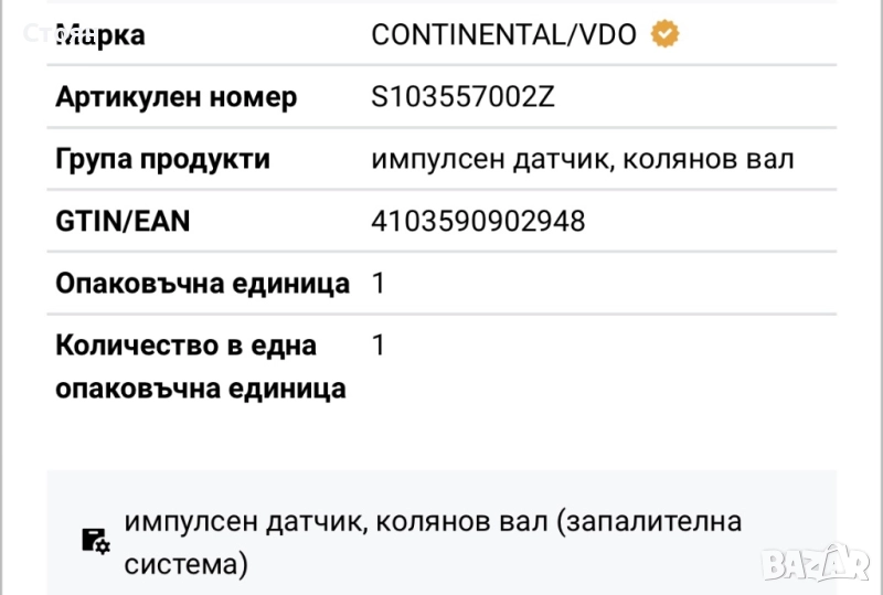 Импулсивен датчик колянов вал за BMW → Обява 52224363