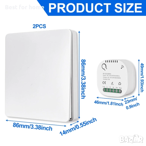 Гаранция за качество: безжичен превключвател с висококачествено реле, което може да се използва над 400 000 пъти. Този приемник има 10-амперово реле, което може да зарежда високопроизводителни електрически уреди. Приемникът е подходящ за променливо напрежение 90V ~ 250V, така че AC 110V/220V/230V е достатъчно.