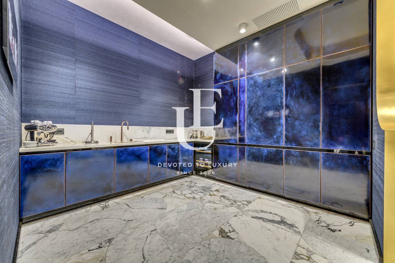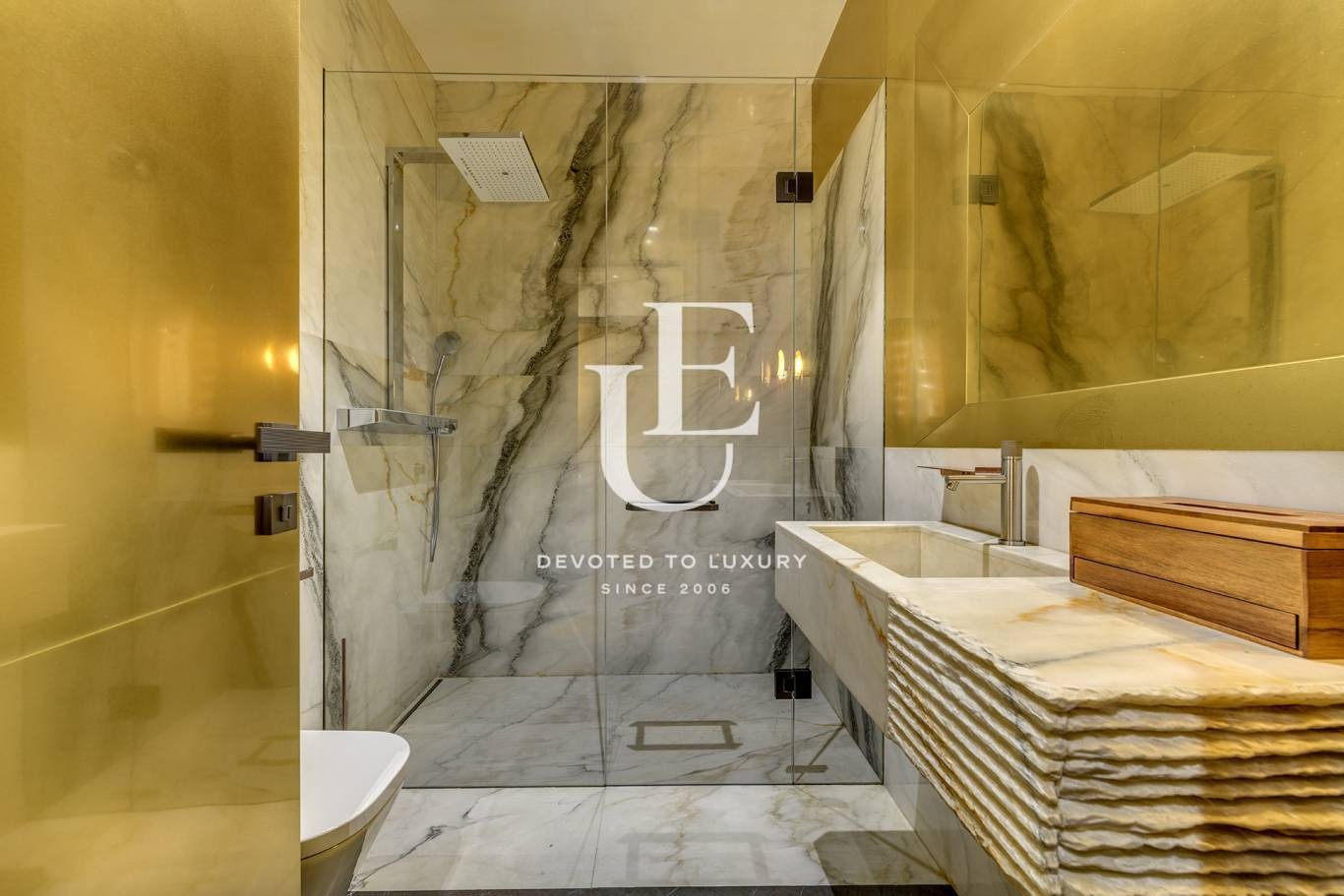 Интериорът на офиса е от най-висок клас - изцяло обзаведен с дизайнерски мебели и луксозни материали - естествен мрамор, месинг, текстилни тапети и дизайнерско осветление, което създава уникална атмосфера, най-висок клас техника и големи стъклени витрини с директен достъп от улицата.