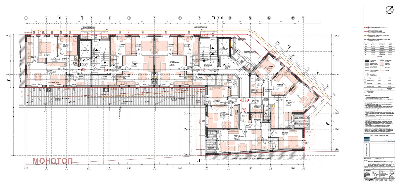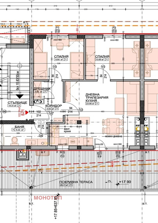 Ап.Б71 в секция 1, със застроена площ 102,29 кв.м.