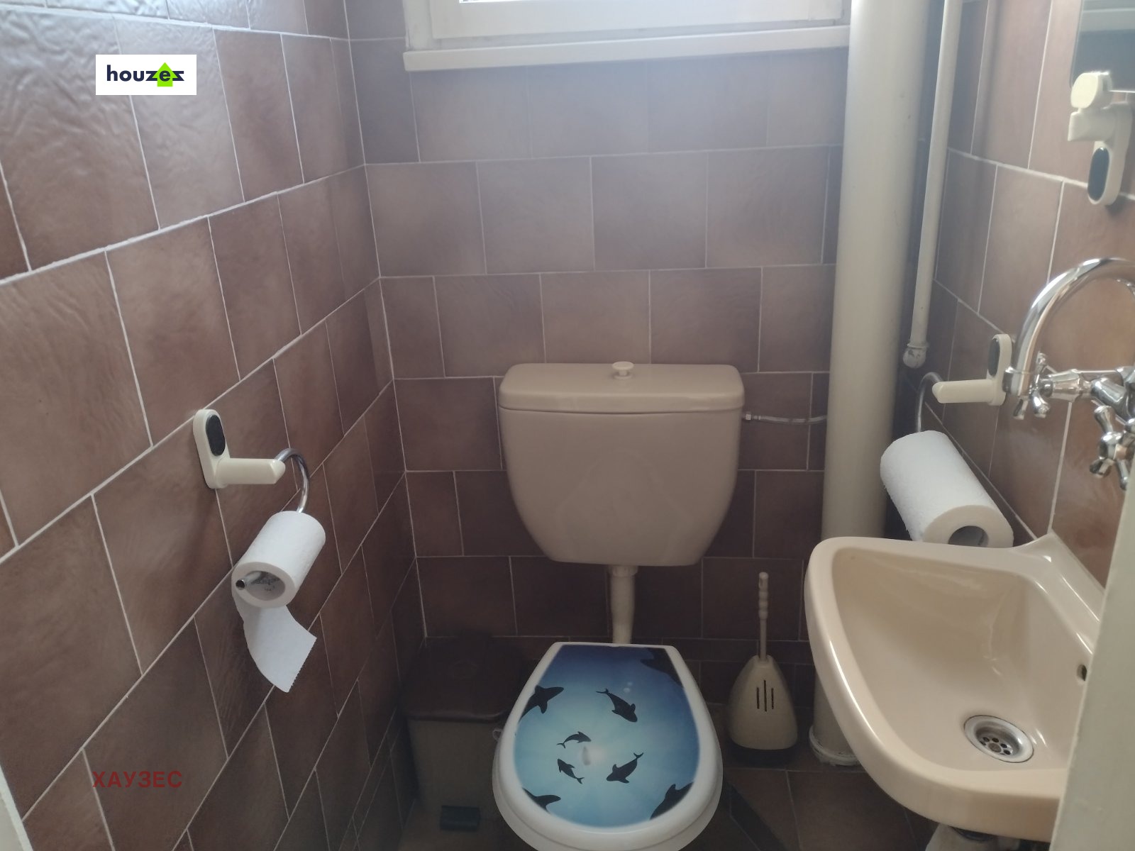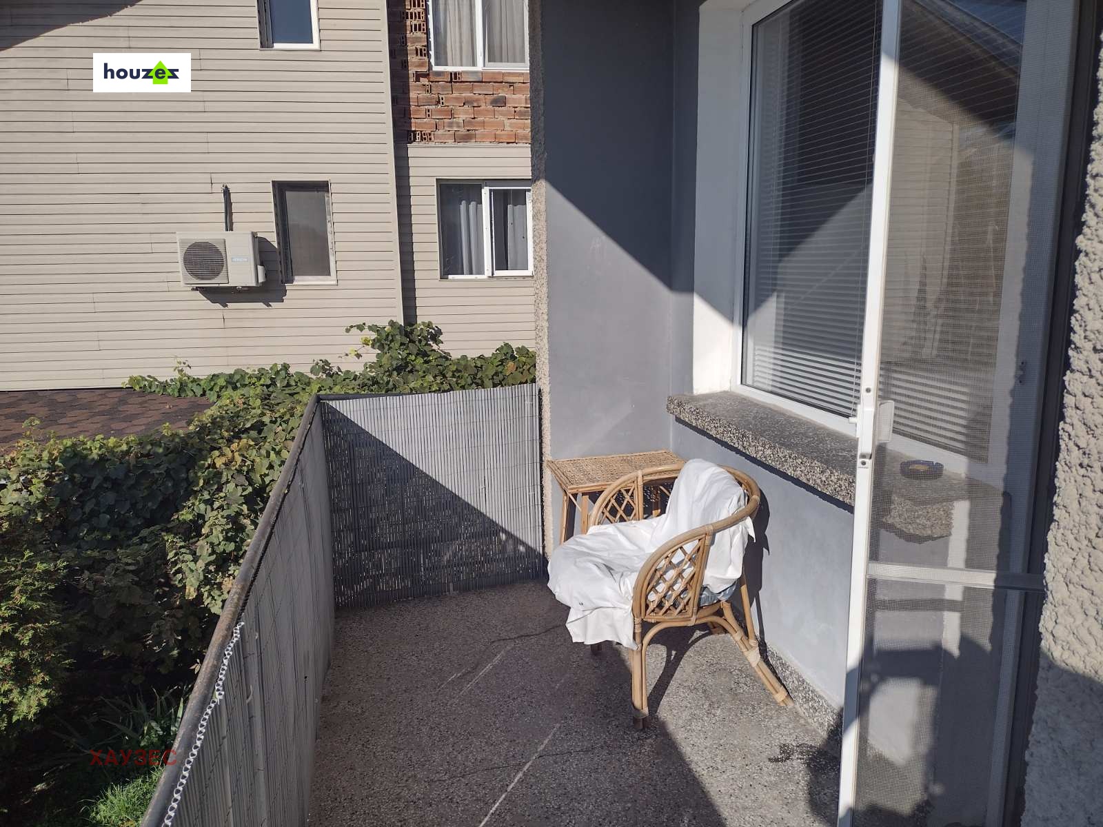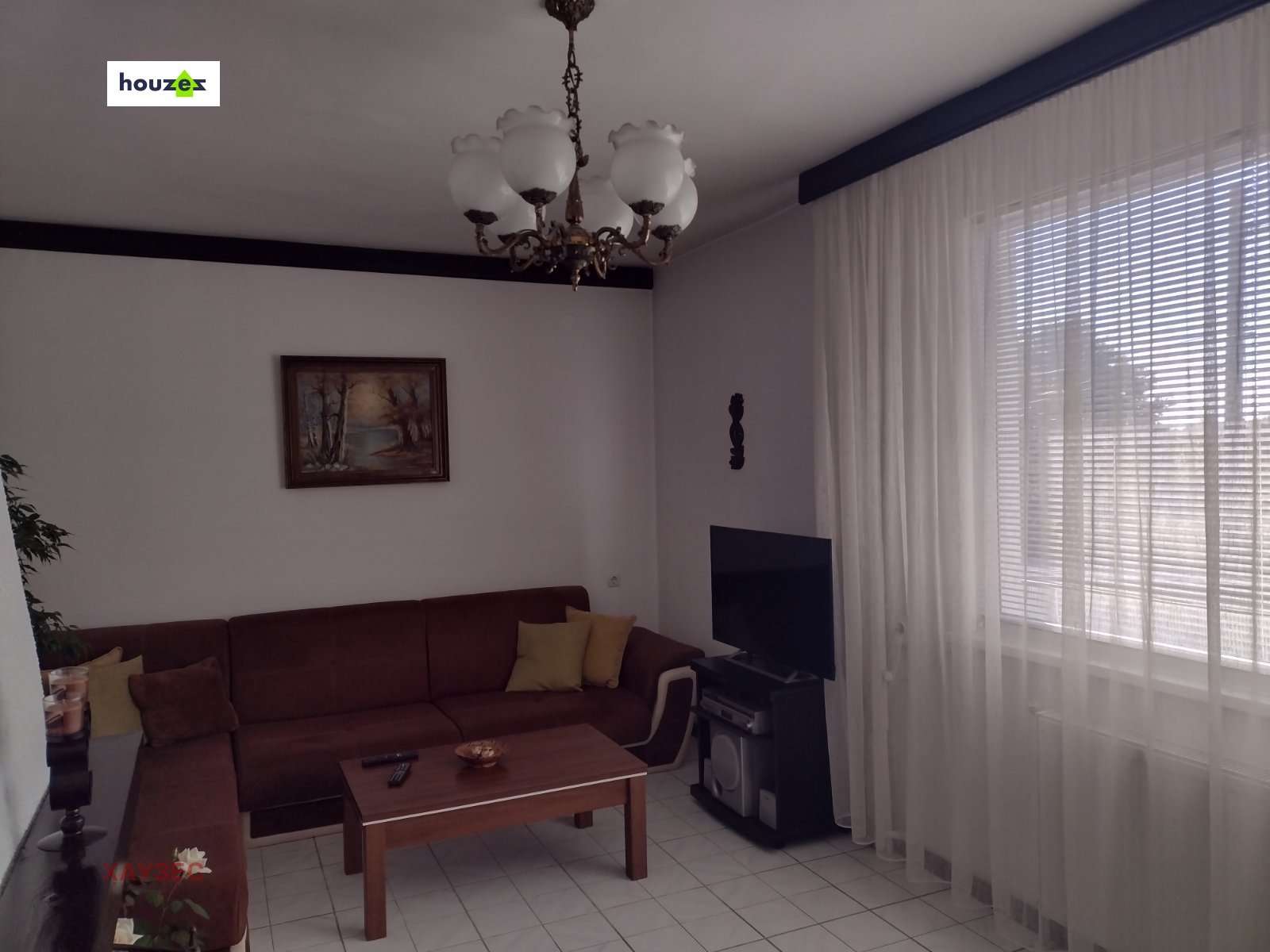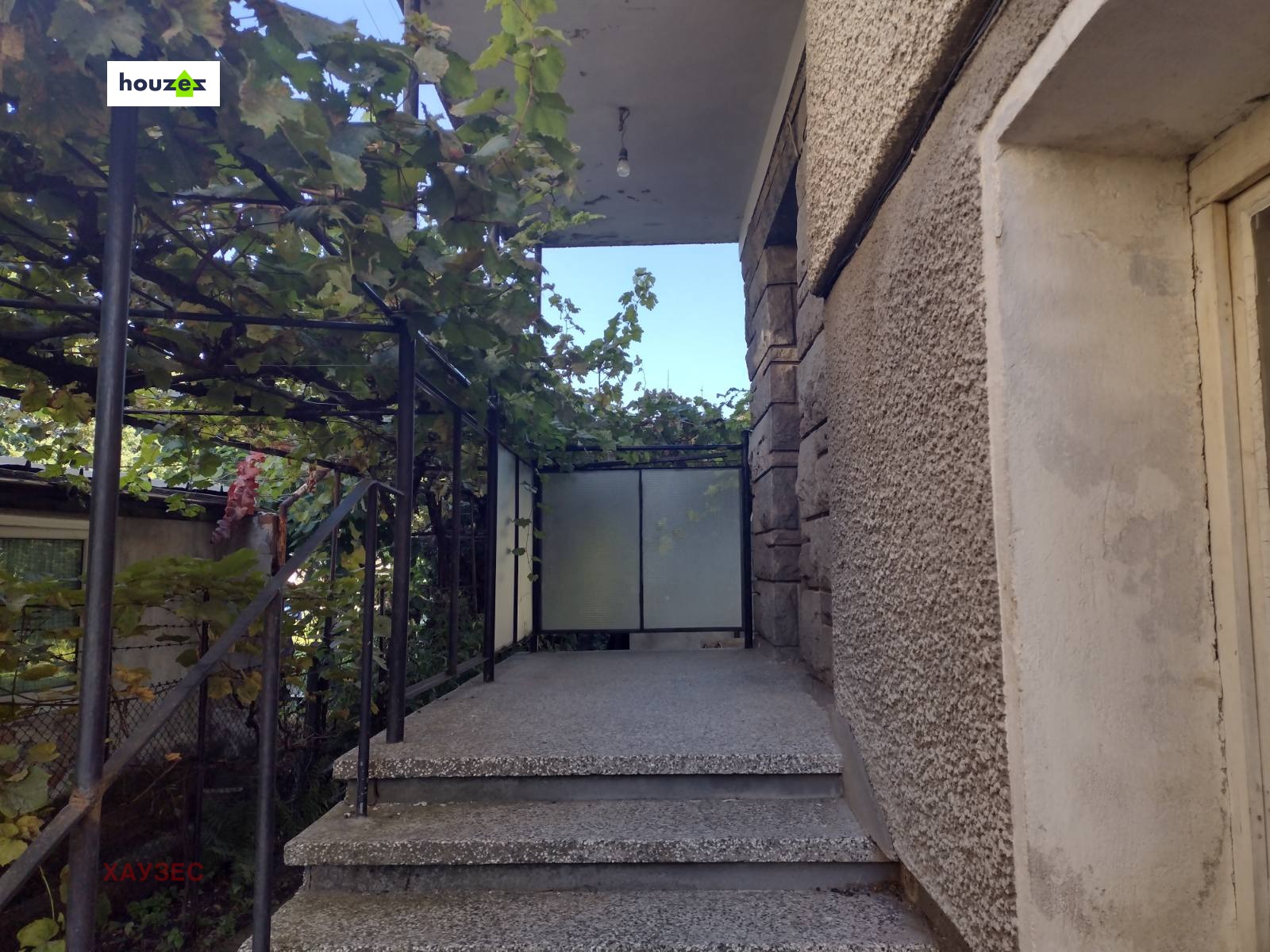 Агенция Хаузес представя на Вашето внимание ПЪРВИ етаж от Двуетажна ДВУФАМИЛНА Жилищна сграда,който е преустроен в четиристаен апартамент с площ от 96,21 кв.м. и разпределен в антре, кухня, дневна с излаз на южна тераса,родителска спалня с излаз на източна тераса, голяма детска стая,баня с тоалетна и стълбище.