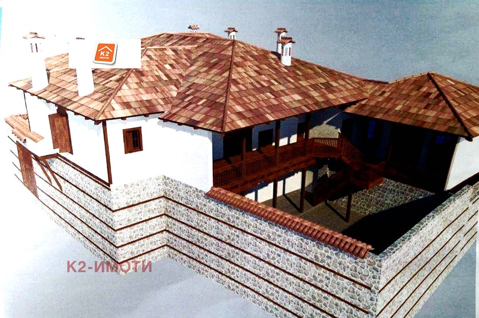 Къщата е със застроена площ от 217кв.м. на 2 етажа, като е с одобрен и финансиран безвъзмездно проект за КЪЩА ЗА ГОСТИ с механа и СПА.