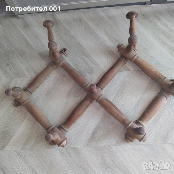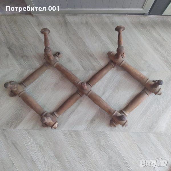 Старинна дървена закачалка за стена , сгъваема тип "хармоника"