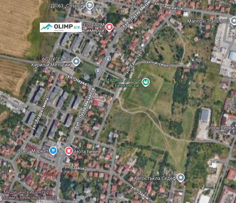 Парцелът се намира в спокоен и бързоразвиващ се район, близо до ул. Оралица, сред елитни новопостроени къщи и футболно игрище. Местоположението съчетава тишина, чист въздух и усещане за простор, като същевременно предлага удобен достъп до града и основните пътни артерии.