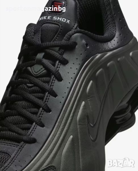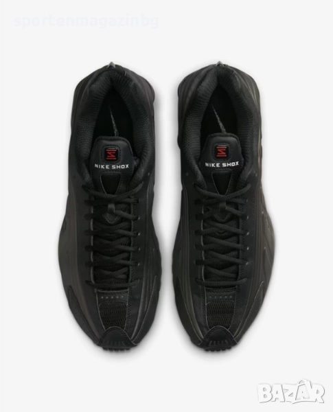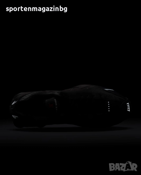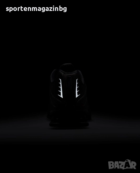 Горната текстилна част ще осигури нужния комфорт а допълнителните синтетични наслагвания увеличават здравината на маратонките. Лазерните перфорации по цялата повърхност осигуряват перфектна вентилация. Допълнително подсилени в областта на петата и пръстите. Swoosh лого Nike от двете страни и лого с надпис Nike Shox върху езика. Светлоотразителни детайли по основата. Нисък профил за по-голяма свобода при движение. Вътрешната текстилна част заедно с изключително омекотената стелка осигуряват невероятна мекота и комфорт с всяка крачка. Супер омекотената вътрешна, междинна подметка подкрепя стъпалата при движение и намалява сътресението, придава лекота и еластичност на маратонката и осигурява правилното позициониране на краката по време на движение. Технологията Nike Shox в задната част включва еластични и гъвкави колони, които се компресират и възстановяват формата си за изключително добро омекотяване. Модифицираната, гумена, кръгла вафлена подметка предлага отлично сцепление.