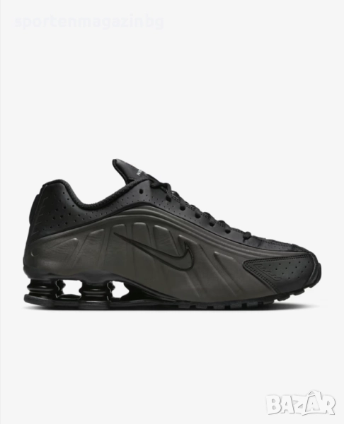 Nike Shox R4 възпроизвежда оригинала със своите футуристични дизайнерски линии и омекотяване, подобно на производителността. Колоните Nike Shox в петата разпределят тежестта, за да увеличат максимално комфорта, като същевременно осигуряват смел вид на улицата.