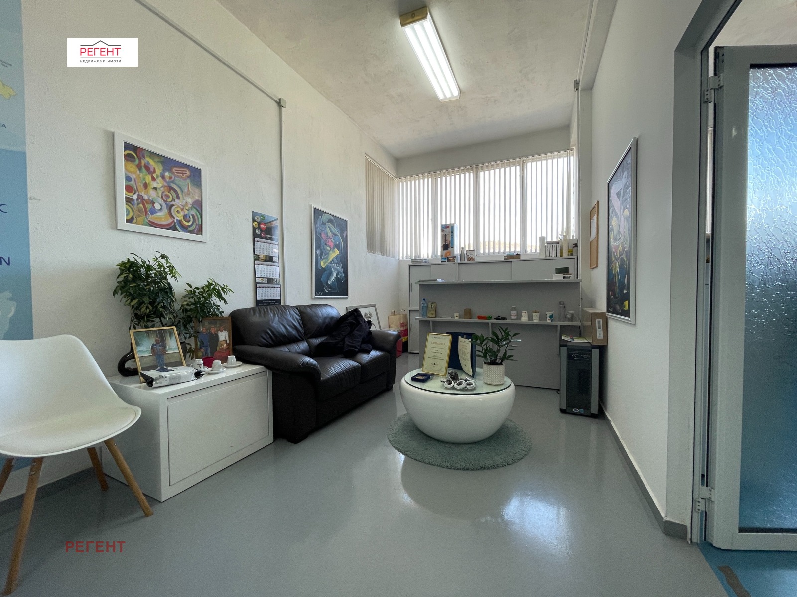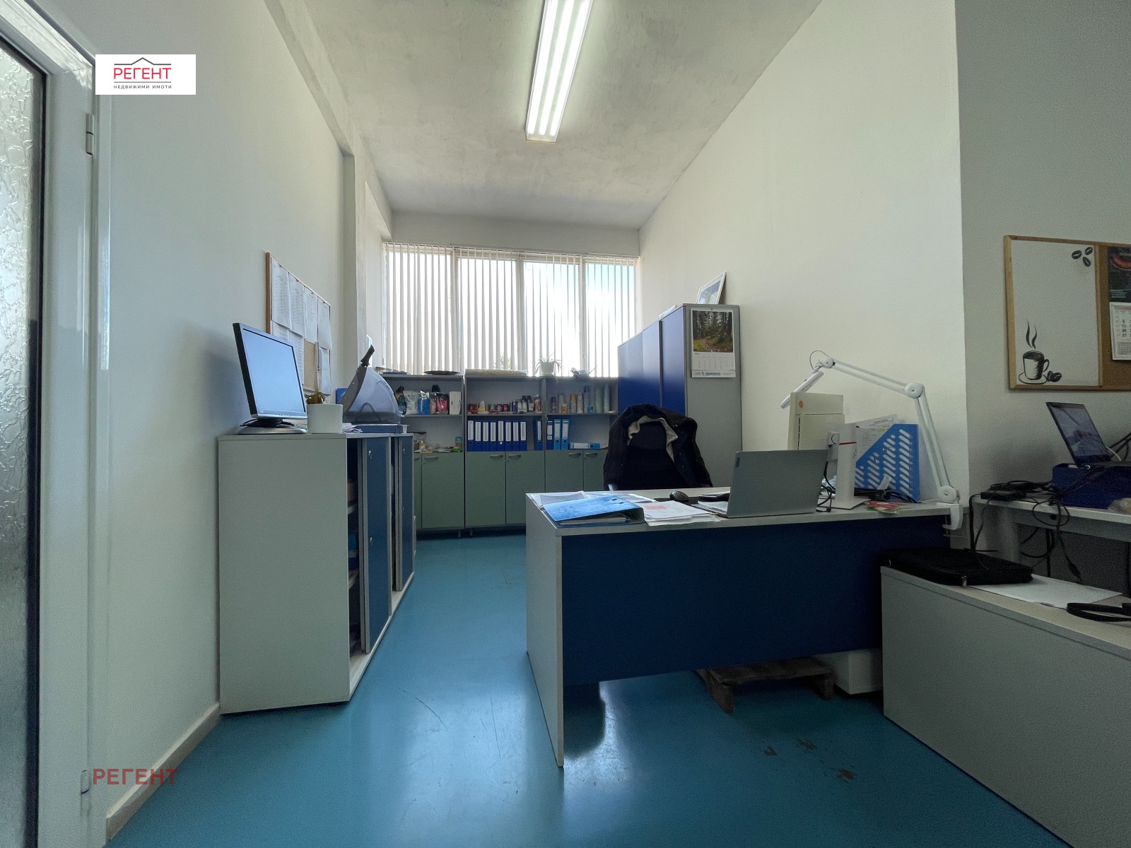 На първия етаж са разположени входно помещение със стълбище, голям склад и производствено помещение, товарна рампа и асансьор с товароподемност 1200 кг с вътрешен и външен вход. Вторият етаж включва гардеробни, съблекални, офисни части, три производствени помещения и външна тераса за отдих на персонала. Имотът се намира в ограден двор с контролиран достъп, в рамките на комплекс от няколко цеха. На разположение е голям плац за маневриране на тежкотоварни превозни средства. Сградата е изградена със стоманени колони и врати, а прозорците са пожарообезопасени. В същия имот се отдава и друга промишлена сграда.