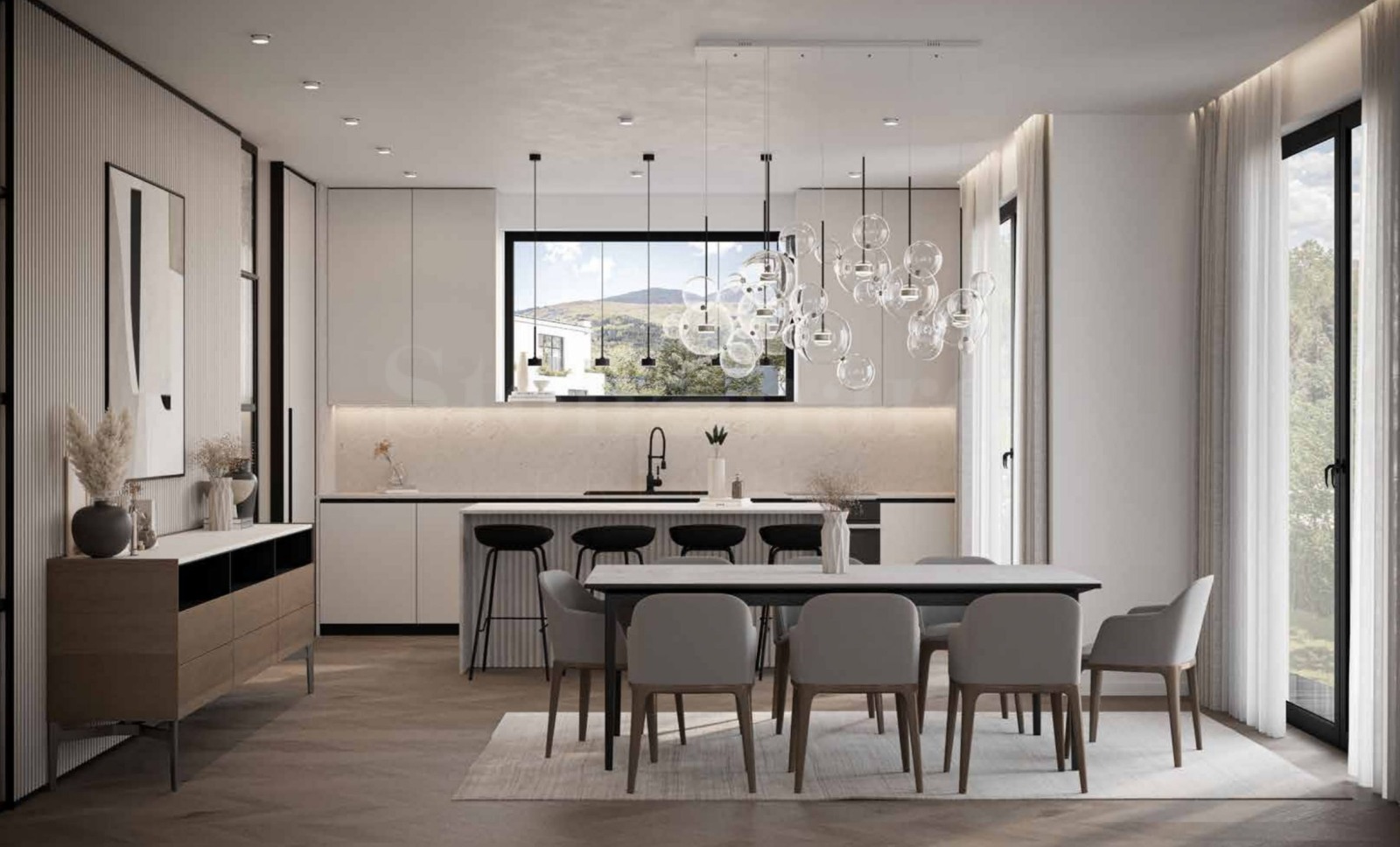 Комплексът е от затворен тип и се простира на терен от 2 137 кв.м. Състои се от две сгради с общо 6 редови къщи, с площи от 304.60 до 394.70 кв.м, всяка със самостоятелен двор и собствени, самостоятелно функциониращи инсталации. Архитектурата е модерна, с плоски покриви, панорамни прозорци и фасада с неутрални, квадратни форми и клинкерна облицовка на първите две нива. На територията на комплекса ще има вътрешни автомобилни алеи, алейно осветление и видеонаблюдение по периметъра на комплекса, както и контролиран достъп.