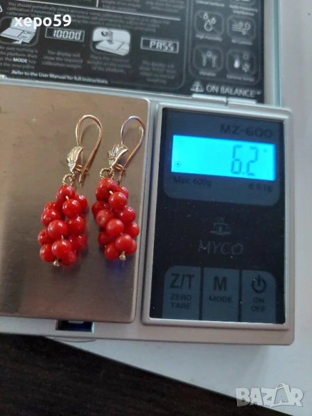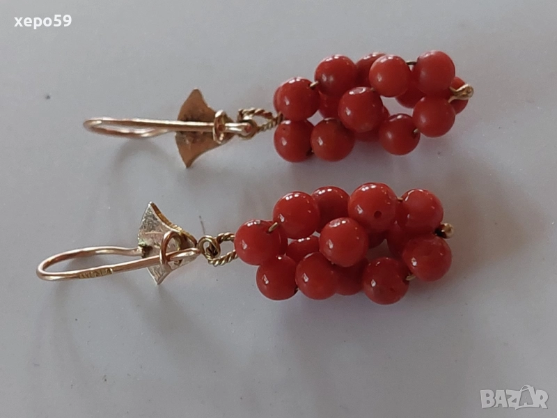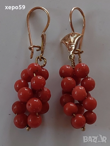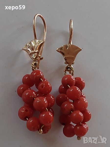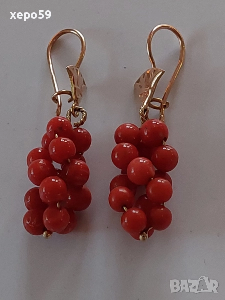 Дамски златни 18 каратови обеци с натурални корали → Обява 52226472
