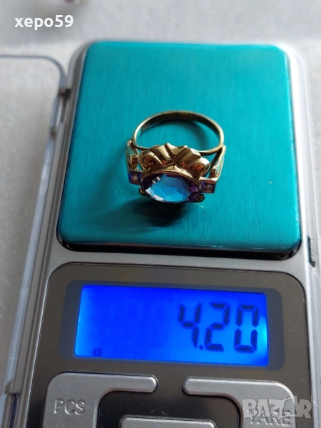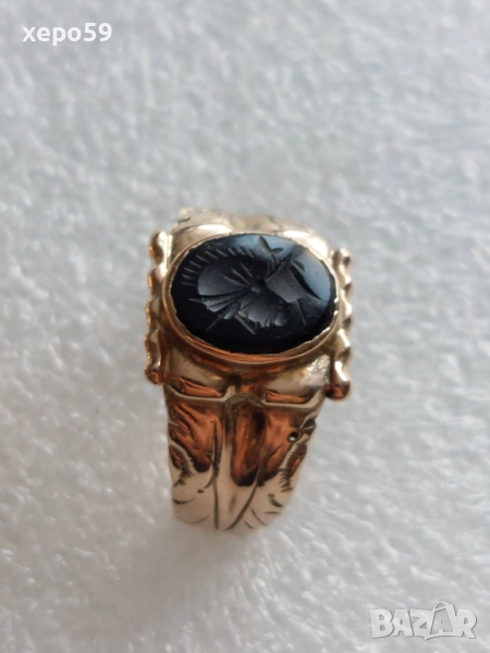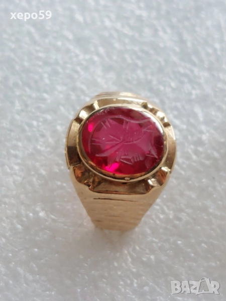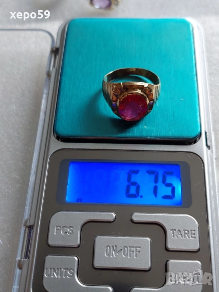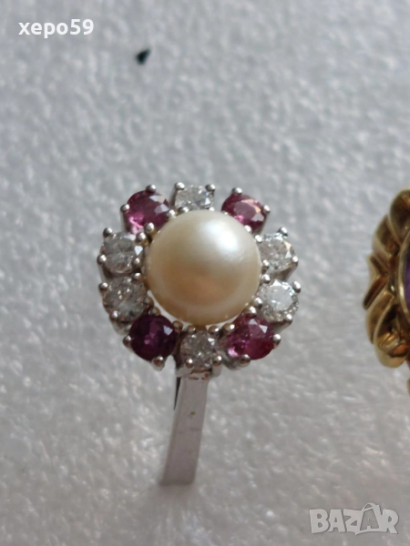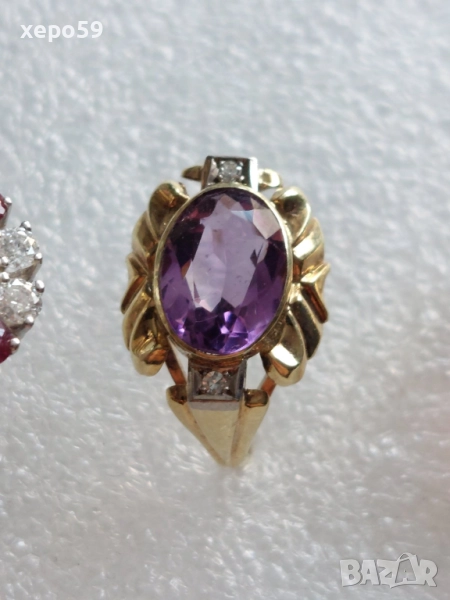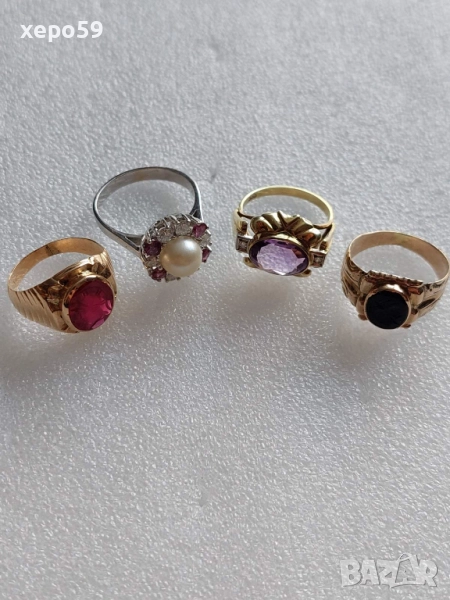 Лот от 4 златни пръстена-диаманти рубин, аметист,оникс,перла,гема, → Обява 52226850